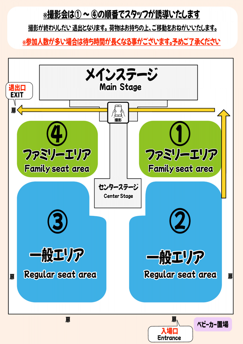 ※イベント中、ご自身の座席の幅を超える動きをされている方にはお声かけをさせていただく場合がございます。お子様の多いイベントですのでご配慮のほどよろしくお願いいたします。
