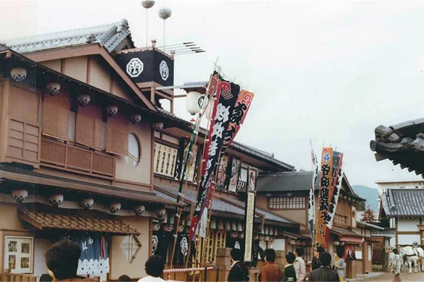 300年以上前の江戸時代に人気のあった歌舞伎の劇場・中村座を再現して1977年に作られました。映画村のイベントでは忍者ショー、ちゃんばら辻指南などのショーで使用されています。