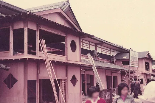 1977年頃:建設中の「芝居小屋 中村座」